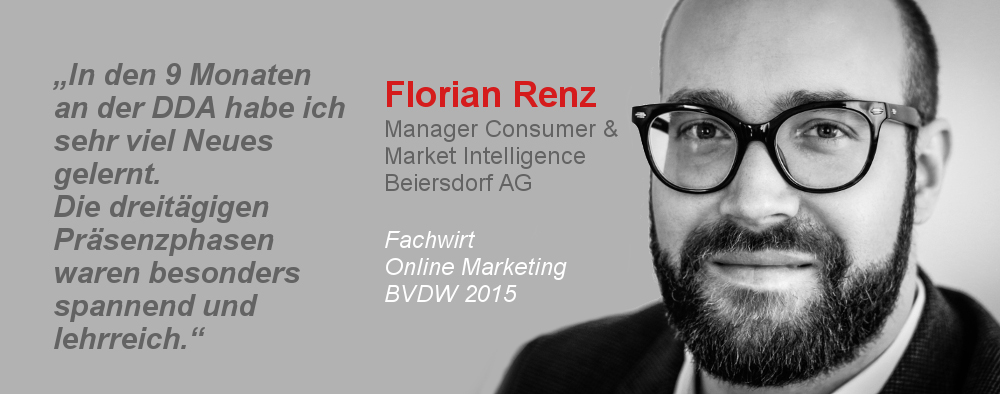 Viele Firmen haben in den über 20 Jahren der DDA gerne in die Qualifizierung einzelner Mitarbeiter investiert, um diese fit für den Job zu machen und gleichzeitig an das Unternehmen zu binden. Und in dieser Zeit hat der Marketing-Führungsnachwuchs bei seinen Chefs darum gekämpft, den berufsbegleitenden Studiengang an der DDA absolvieren zu dürfen, weil dies für den Job professionalisiert und zugleich der eigenen Karriere sehr zuträglich ist.